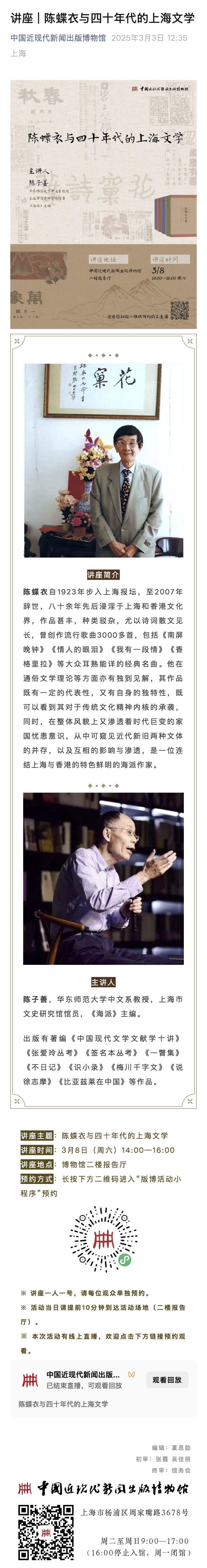 讲座 陈蝶衣与四十年代的上海文学